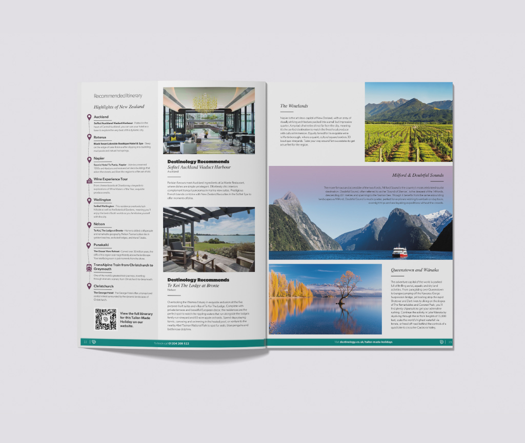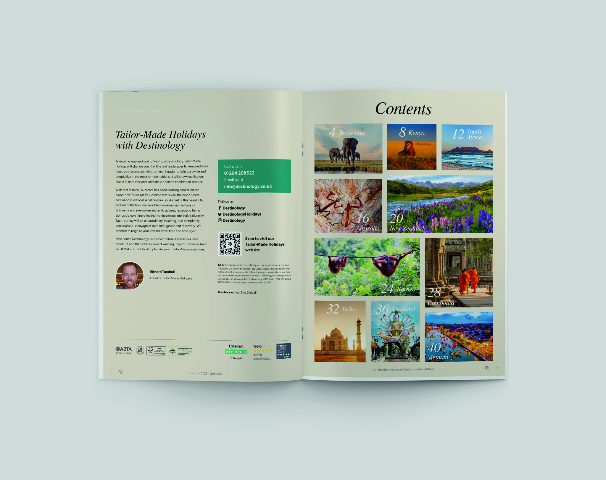The Brief: Design a luxury direct mail magazine for Destinology showcasing unique and individual travel experiences with editorial articles intertwined with subtle pricing and offers, using inspirational photography and personal travel reviews.