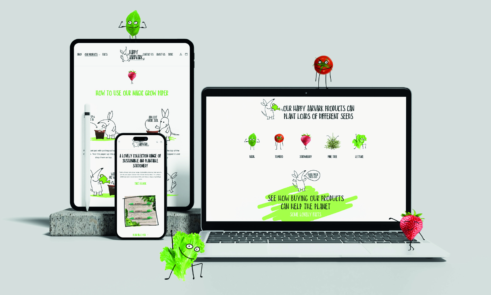 The Brief: Create a brand and e-commerce website for an earth friendly company that makes plantable cards, notepads, pens and calendars. Create designs for each product incorporating the brand look and feel.