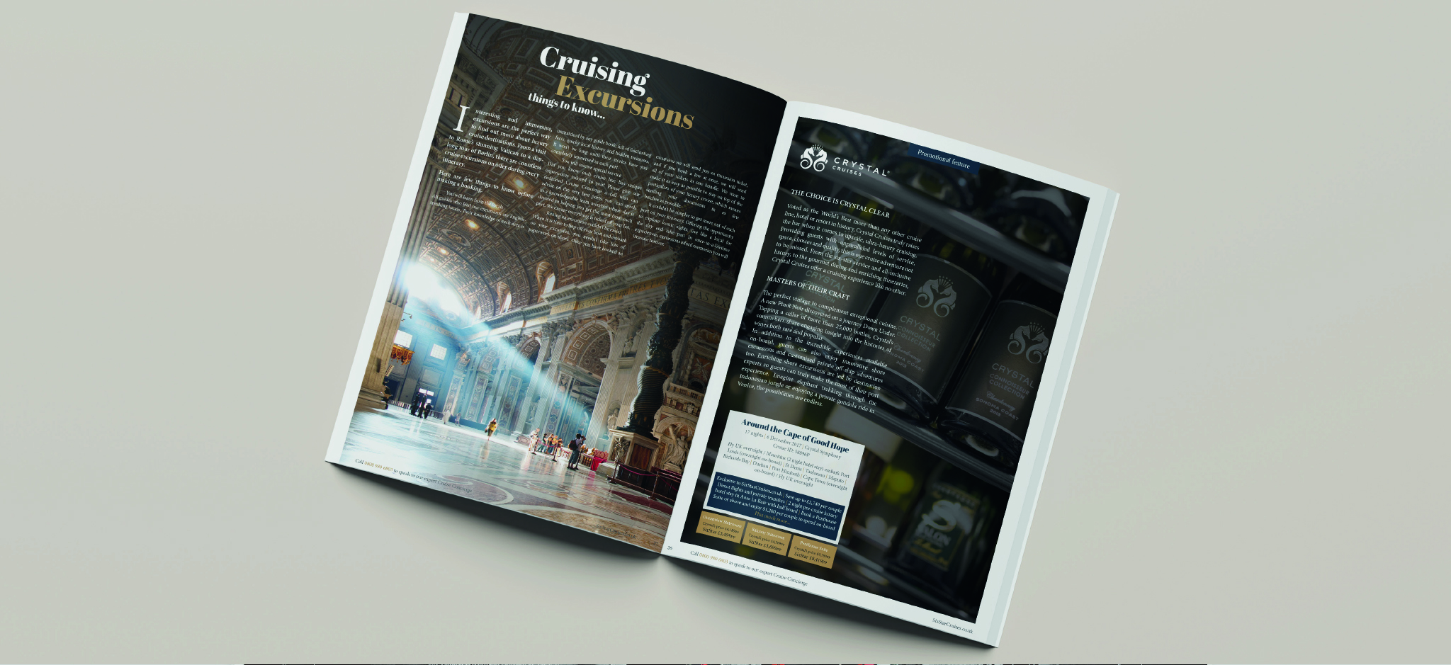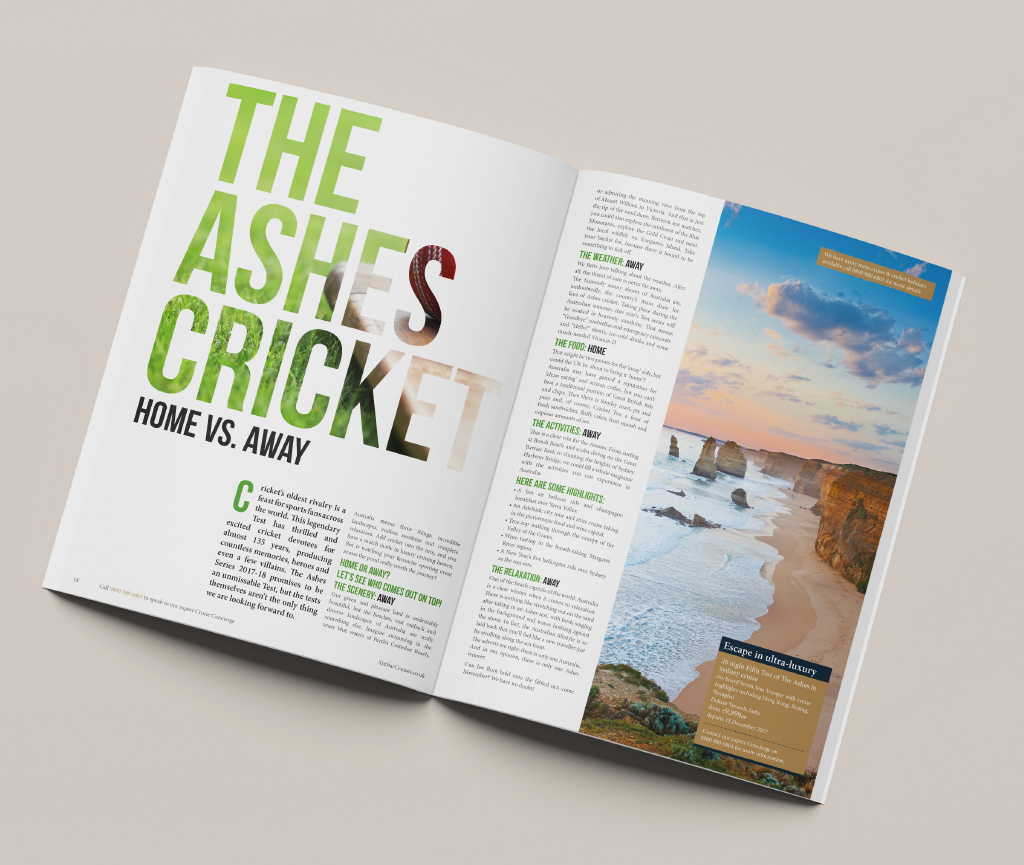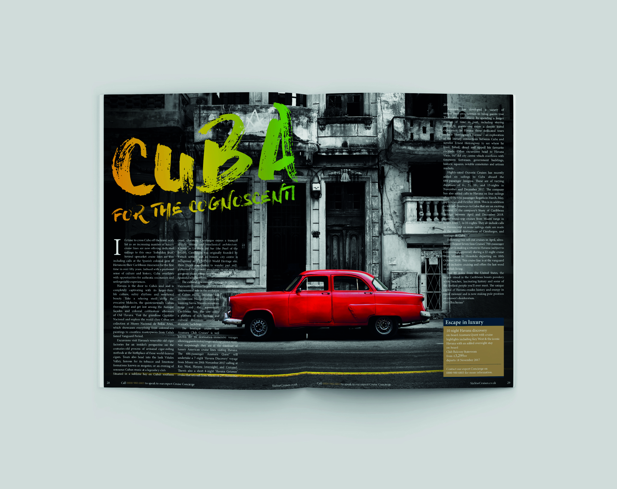 Create a luxury direct mail magazine that showcases Six Star Cruises. Highlight world events and unique cruise destinations with guest articles and tailor made excursion offers to help subtly drive calls and increase enquiries.